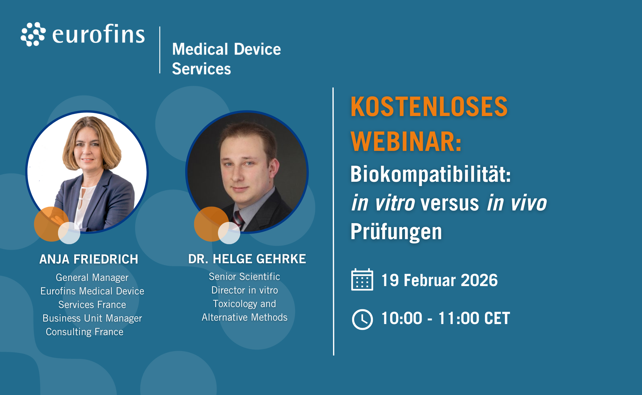 - Anja Friedrich: General Manager Eurofins Medical Device Services France, Business Unit Manager Consulting France